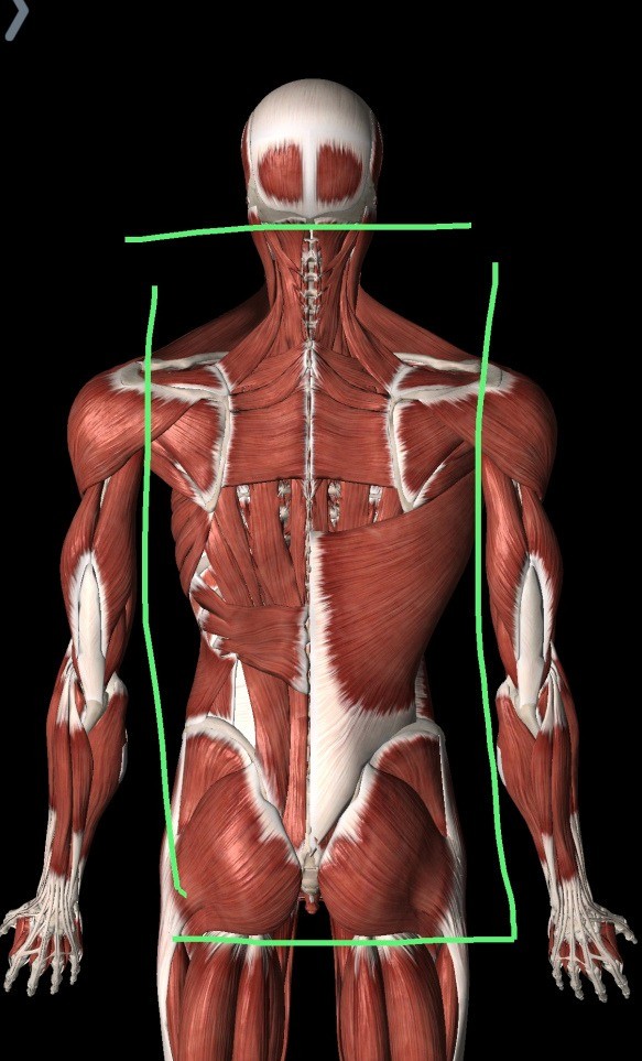 No aizmugures tas būtu posms no pakauša līdz dibenam, abus lielos dibena muskuļus ieskaitot, jo, pavērojot muguras atliecējmuskuļu anatomisko uzbūvi, var konstatēt diezgan nozīmīgu niansi- tie, savstarpēji biomehāniski pārņemot pienākumus, izkārtojas garā ceļā no krusta kaula un iegurņa kauliem līdz pat pakauša pamatnei.